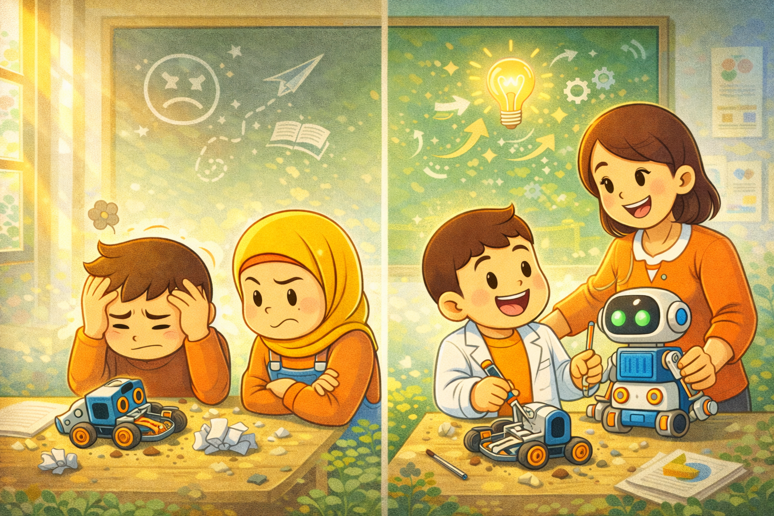 Frustrasi di kelas adalah bagian alami dari proses belajar. Di PLEGO, kegagalan dipandang sebagai peluang untuk membantu anak berpikir, mencoba, dan berkembang. Melalui pendampingan fasilitator dan pe